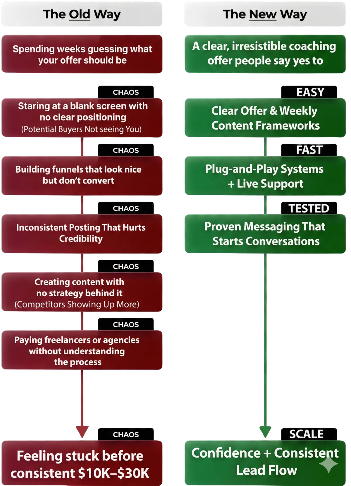Offers That Scale is a plug-and-play (DIY) coaching business system designed for coaches, consultants, and service providers who want to build a real offer, launch a converting funnel, and start selling—without paying an agency $5,000 or wasting months figuring it out alone.